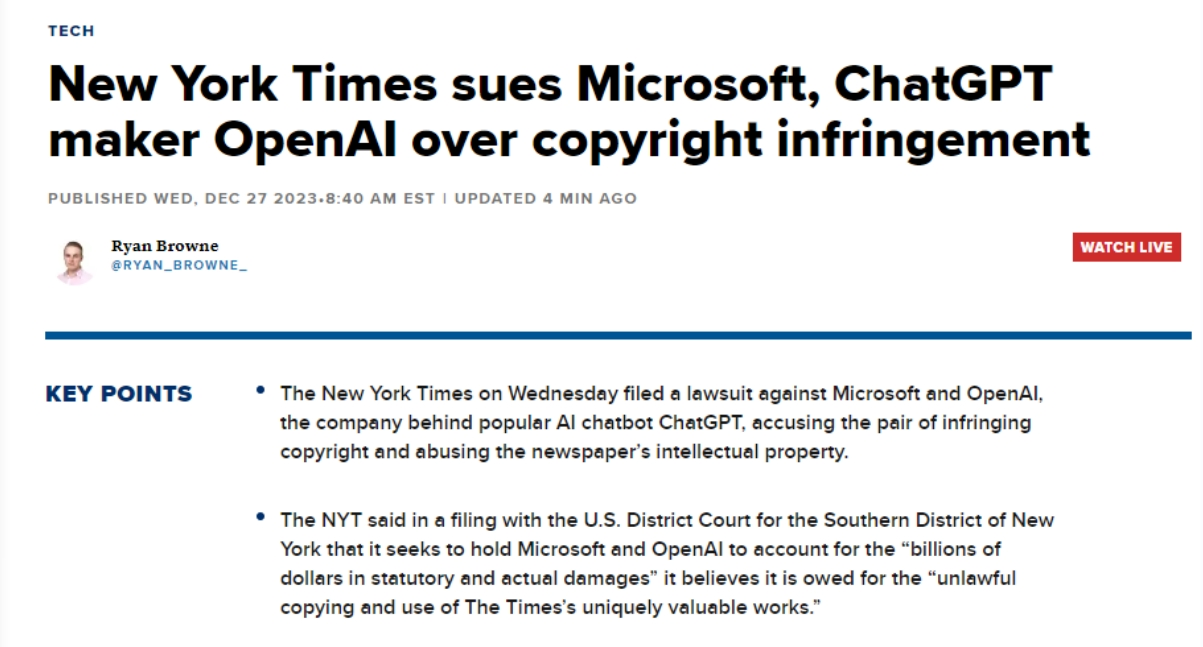 据公开动静,例如,进而导致了收入丧失。显示了传媒业取AI手艺的复杂关系。纽约时报此后正在一份电邮声明中暗示,《纽约时报》12月27日就版权告状OpenAI和微软。几乎一字不差地沉现了《纽约时报》旗下评测导购网坐“The Wirecutter”的内容,微软的Bing Chat供给了据称是来自《纽约时报》的错误消息。