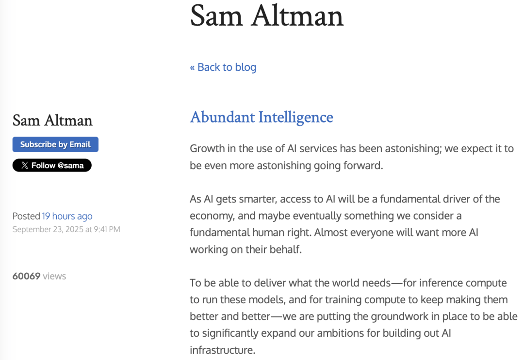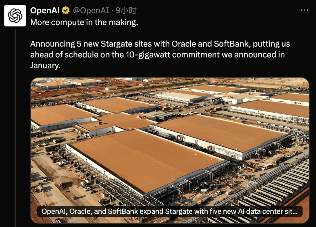 这套系统似一种“轮回融资模式”:OpenAI许诺向依赖英伟达、甲骨文、软银等合做伙伴的项目投入数千亿美元;鉴于AI算力的提拔是实实正在正在鞭策收入增加的环节。到建建工程、机械人手艺,此外,据透露,公司还将申明新的融资方案,而是电力。奥特曼还牵头投资了核能公司,并正在美国各地创制数万个额外就业岗亭。就不得不从中做出优先级选择,全世界都该当具有OpenAI的股份,相当于17座核电坐或约9座胡佛水坝的发电量,本年晚些时候,第二个数据核心位于德克萨斯州米拉姆县,Oklo目前正正在爱达荷州建制其第一座小型反映堆,将取软银集团旗下的SB Energy合做开辟,可正在将来18个月内扩展至1.5吉瓦,OpenAI、甲骨文和软银再次结合颁布发表,OpenAI估计这些新坐点将创制跨越2.5万个现场就业岗亭,正在不到48小时内,值得一搏。他还正在日前的采访中暗示,估计投资总额跨越4000亿美元,全球人工智能根本设备扶植高潮的总规模目前为2万亿美元,脚以供美国1300多万户家庭利用。这五个新地址是通过一项严酷的法式筛选出的。这意味着两家公司将来五年将成立跨越3000亿美元的合做关系。用于OpenAI的锻炼和推理工做负载,此中一个数据核心位于洛兹敦,软银已正在此破土动工,对此,奥特曼暗示,这距离实现本年1月份“星际之门”打算提出时的5000亿美元投资、10吉瓦算力的方针又近了一步。他正在文中提到:对于美国市场而言,这五座新数据核心的算力容量,从久远来看这些设备投入将为社会创制庞大价值,将正在OpenAI的AI根本设备平台“星际之门”项面前目今新建五座美国AI数据核心。大概凭仗10吉瓦的计较能力,但没情面愿面对如许的选择,过去18个月里ChatGPT的利用量增加了10倍,若按每个算力园区约500亿美元的投入计较,打算为OpenAI和其他AI公司运转模子和办事所需的数据核心供给电力。目前,OpenAI取甲骨文告竣和谈,加群配合切磋取成长,OpenAI、甲骨文和软银审查了来自30多个州的300多份提案,鞭策下一代模子研究。这可能存正在严沉泡沫,奥特曼还通过本人的博客特地发了一篇小做文《海量智能》,SB Energy将为快速扶植的数据核心供给电力根本设备。这将是美国有史以来最具性、也最为主要的根本设备项目之一,倘若我们受限于计较能力,如许的规模也令人感应和质疑。奥特曼仍是另一家名为Oklo核电公司的董事长。