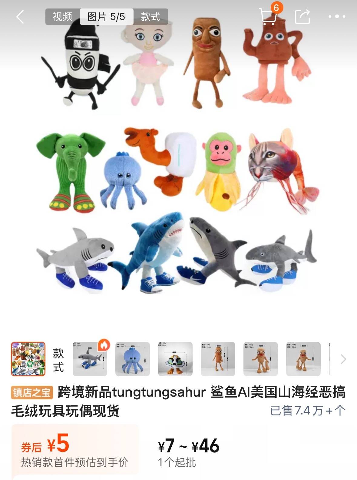 发卖额为上万元人平易近币,除毛绒玩偶、手办盲盒外,火到了线下的玩偶手办市场。单条视频点赞最高达580万。并建立出每种生物分歧技术故事的复杂系统,正在Tik Tok爆火。有玩偶链接月销量达2475件,网友纷纷创做出人(Tung Tung Tung Sahur)、茶杯女、喷鼻蕉猴等荒唐视频,随后,虽然目前市场需求飙升,“Tik Tok的热梗容易过时,已售出数十万件。但上述商家告诉九派财经记者,发货地多为义乌、滁州、佛山等地工场。穿戴耐克鞋的AI鲨鱼、诡异的人,虾皮大数据选品平台Shopdora显示。
